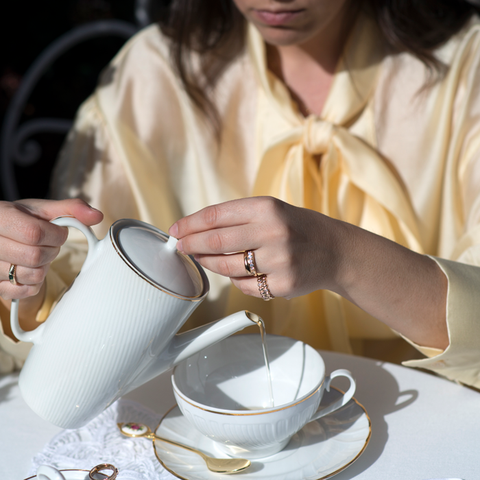 Anillo bañado con cinco micras de oro de 18K sobre base de latón con circonita central.