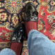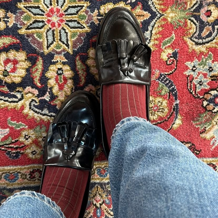 Media doble punto de canalé de Mujer. Combinando azul marino y verde botella