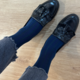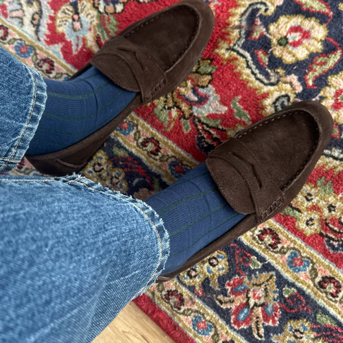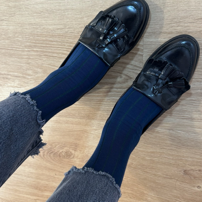 Media doble punto de canalé de Mujer. Combinando azul marino y verde botella